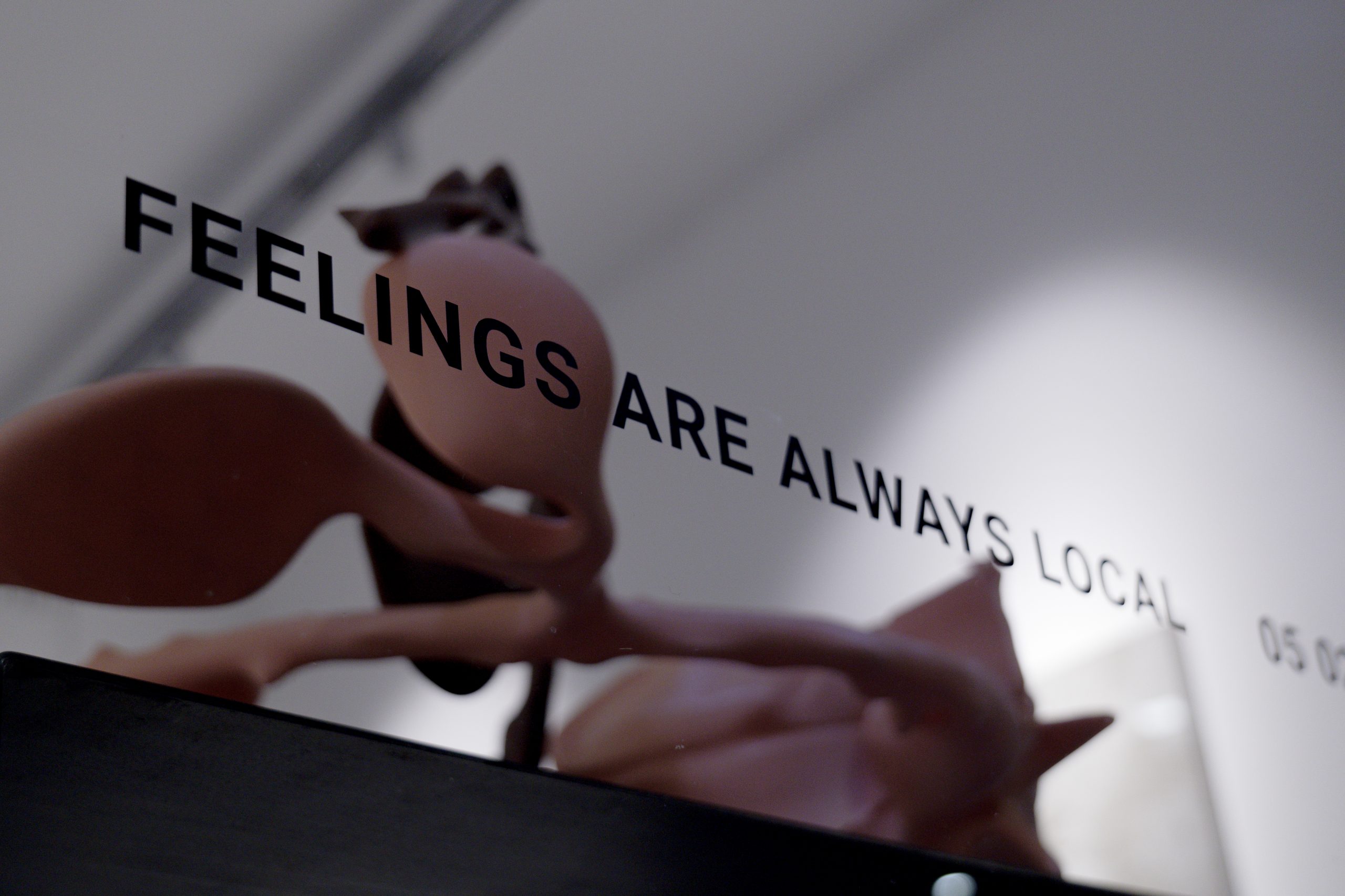 La mostra Feelings Are Always Local documenta il cammino comune di un gruppo di artisti che ha dato vita a un network dinamico a Milano, sperimentando l’evoluzione degli strumenti digitali dai primi duemila a oggi. È possibile che le opere manifestino una contaminazione fluida nata dalle interazioni reciproche, ritiene Tiziana Gemin, testimone di questo processo collettivo e curatrice della mostra. L’unica certezza è che i sentimenti non si calcolano sono sempre locali e riguardano una dimensione specifica.